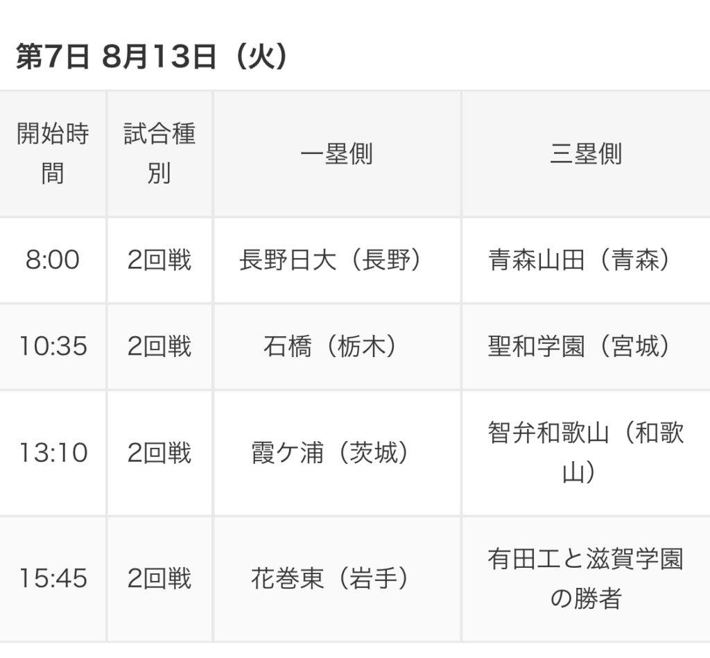 日 時 8月13日(火)13:10〜予定
