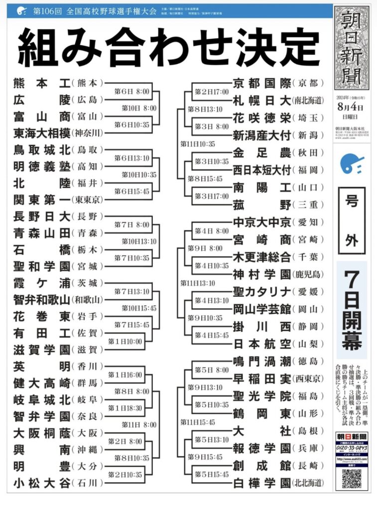 第106回全国高等学校野球選手権大会 組合せ決定